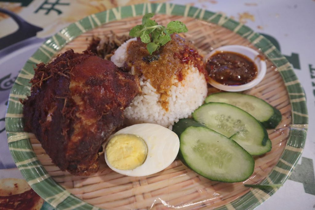 虽说源自中国海南,但在马来西亚开花结果。鸡肉滑嫩,米饭吸饱鸡汤香气,搭配特制辣酱、姜蓉和酱油,一套三碟,吃起来干净利落,滋味十足。鸡要用温水焯熟,再冰镇锁嫩,才有那股鸡香四溢的味儿。