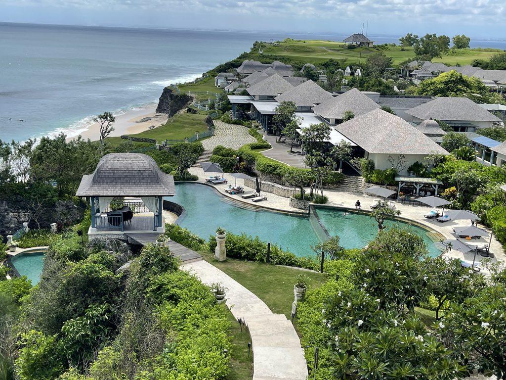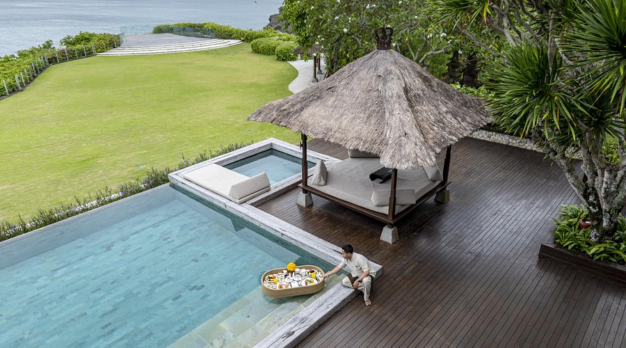 矗立在巴厘岛布奇半岛南海岸线上的峭壁高原上,距离最美日落海湾金巴兰仅仅 15 分钟的车程,恣意独享居高临下远眺着印度洋与辽阔天空连成一线的美景,无需与他人分享便能尽情沉溺于静谧又迷人的巴厘岛!