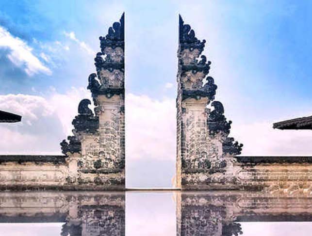 天空之门的名称源于其独特的地理位置。由于Pura Lempuyang寺位于海拔1000多米的山顶,站在门前可以俯瞰壮丽的山脉和云海,感觉仿佛能够触摸到天空。这扇门成为了人们眼中离天空最近的一扇门,因此得名“天空之门”。
