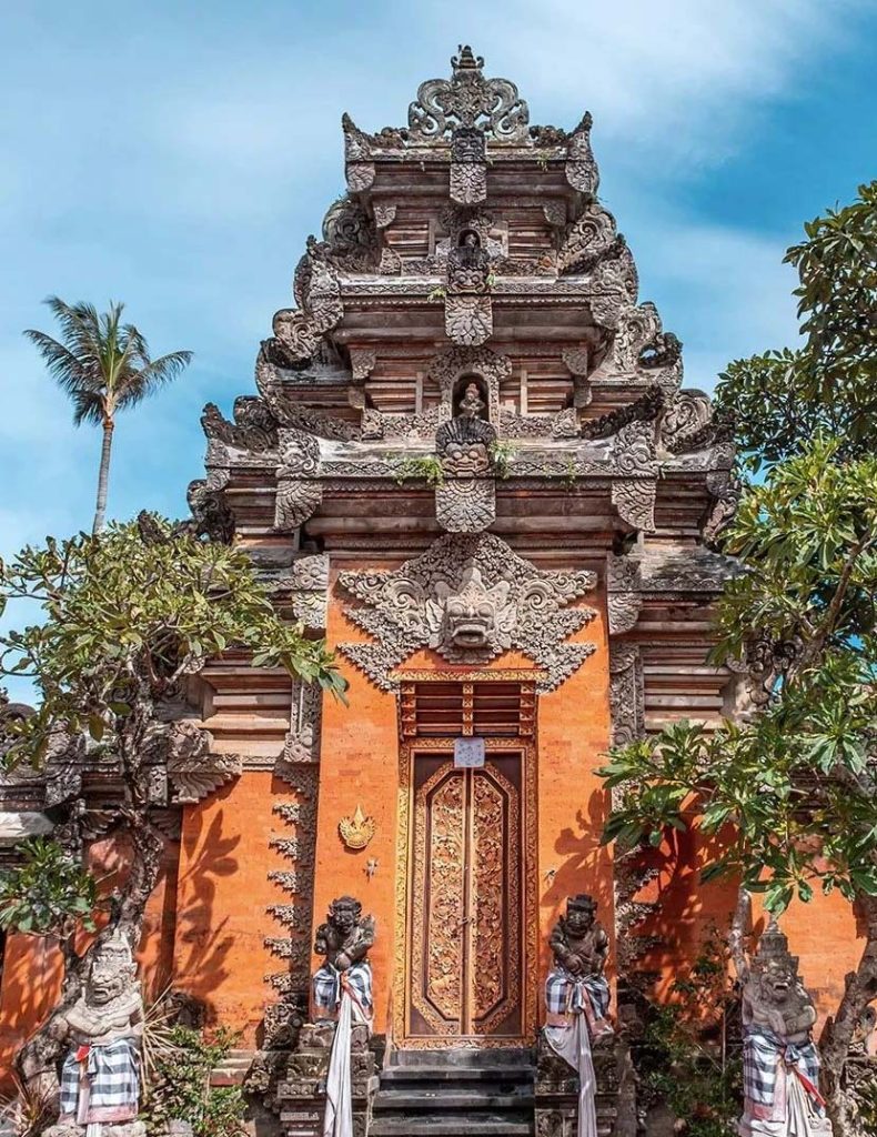 乌布王宫位于印度尼西亚巴厘岛乌布市中心,是巴厘岛特色文化的代表之一,呈现出巴厘岛的独特建筑风格。乌布王宫大门口的雕塑非常精美,体现出浓厚的东南亚风情。乌布王宫还是多个当地节日和庆典的主要场所之一。