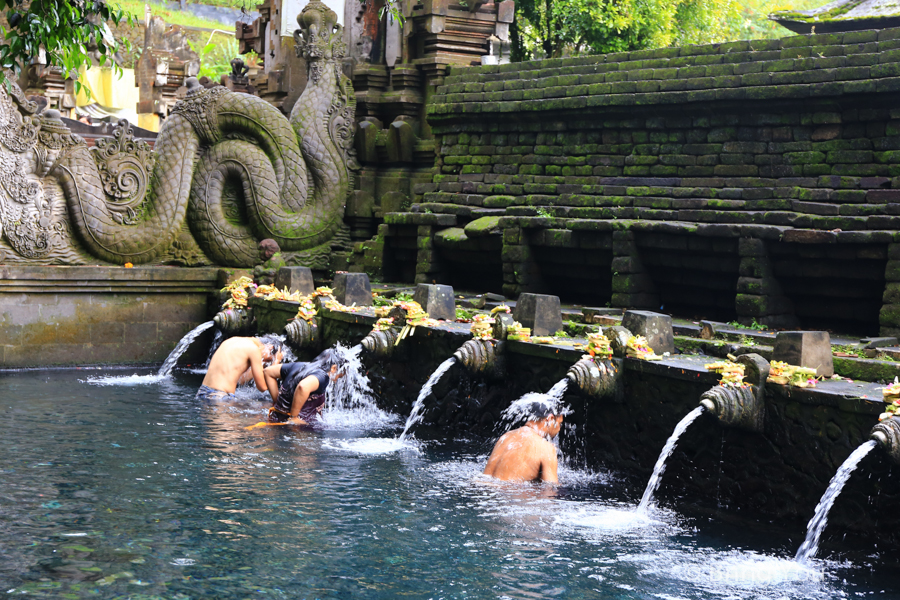 圣泉寺(Tirta Empul Temple):圣泉寺是一座印度教寺庙,已有上千年的历史了。可以去看或者参与沐浴仪式,这里有喷涌上千年的神奇泉水。走进圣洗的场所,可以看见好多人站在池子里排队等着沐浴。