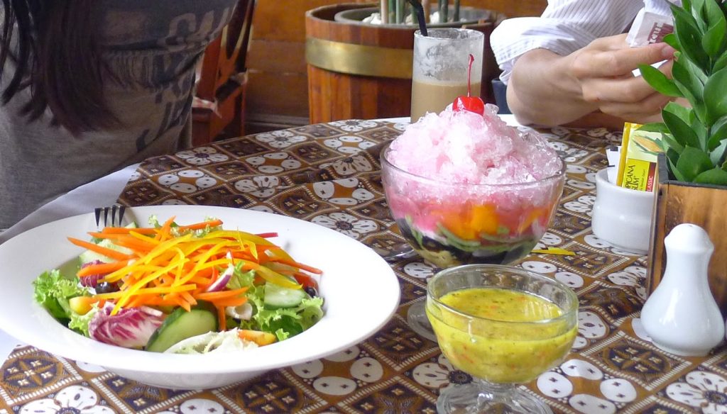 印尼刨冰(Es campur):印尼刨冰看上去非常“多巴胺”,很漂亮。印尼人做刨冰的时候会以椰糖、椰奶作为调味料,并且会用一些当季水果作配料,天热的时候口味真的很棒。但卖刨冰的地方看上去不太干净,肠胃不好的朋友要慎吃!