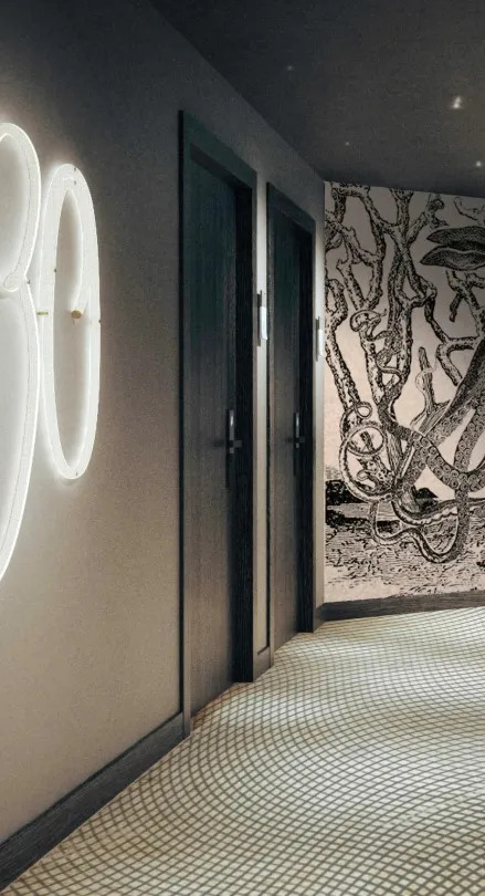 酒店的主要设计由Karin Krautgartner操刀,为贯彻品牌理念,她以富有香港色彩的历史元素作为装潢灵感,将艺术交融在酒店的每个角落,走廊过道、接待大堂、客房壁画 …… 移步换景,举步探寻,带领宾客体验作为全新地标建筑的魅力。