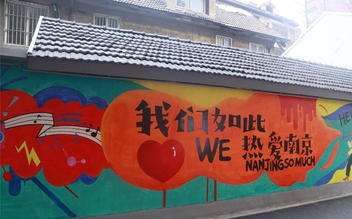 金银街:梧桐树下的艺术街区啊,墙上有“我们如此热爱南京”的涂鸦,金银街的绝对C位,充满了感染力,几乎是每个来这里的人都会拍一张照片的地方。街边有集装箱式杂货铺,氛围松弛。