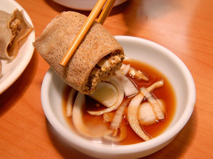 提供的荞麦面比日式荞麦面酱油汤汁更浓郁,口感更有嚼劲。