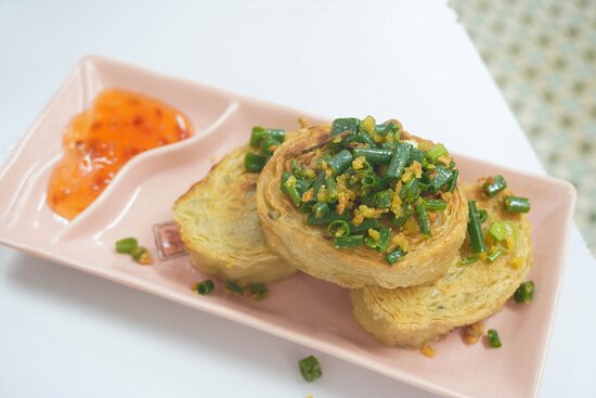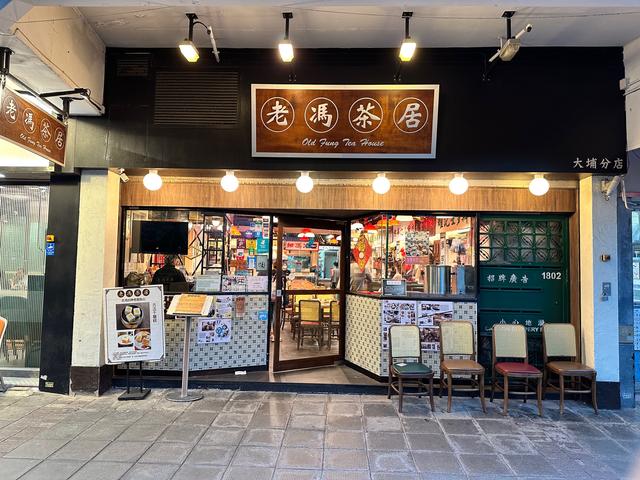 老冯茶居在元朗、荃湾、旺角、大埔都有分店,店铺以六、七十年代的旧情怀为主题,主打多款传统点心,包括制作工序繁复的古法千层糕,口感松软且带有浓郁的咸蛋黄味。