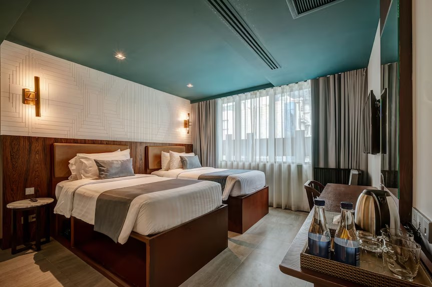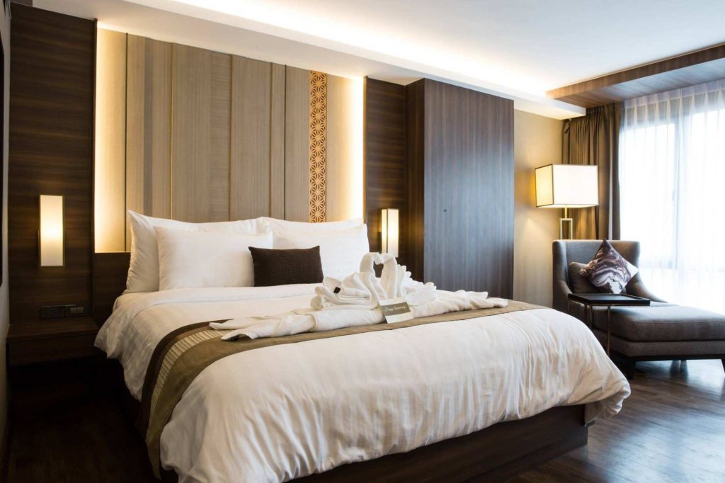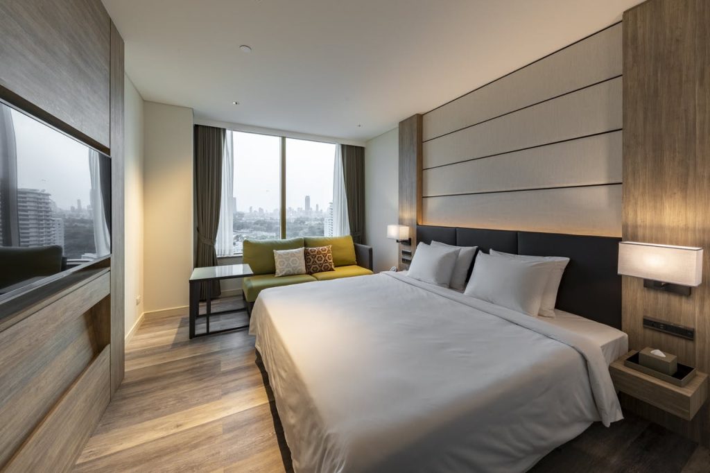 我们想推荐的下一个 BTS 附近的住宿是曼谷茉莉城市酒店。该住宿装饰风格简约而豪华。有多种类型的客房可供选择,如豪华工作室、高级工作室、带水疗浴缸的行政套房,以及许多其他服务,如室外游泳池、餐厅、健身室、机场班车。