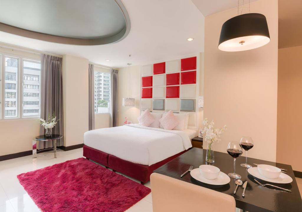 此外,该住宿拥有多种类型的房型可供选择,例如豪华套房、4 人行政套房、豪华高级房、高级房,最重要的是,该住宿靠近 Asok BTS 站和 Sukhumvit MRT 地铁站。距离BTS Asok站约60米,步行约2分钟;距离MRT Sukhumvit地铁站约300米,步行约4分钟。出行方便,服务又这么齐全,值得尝试住在这里。