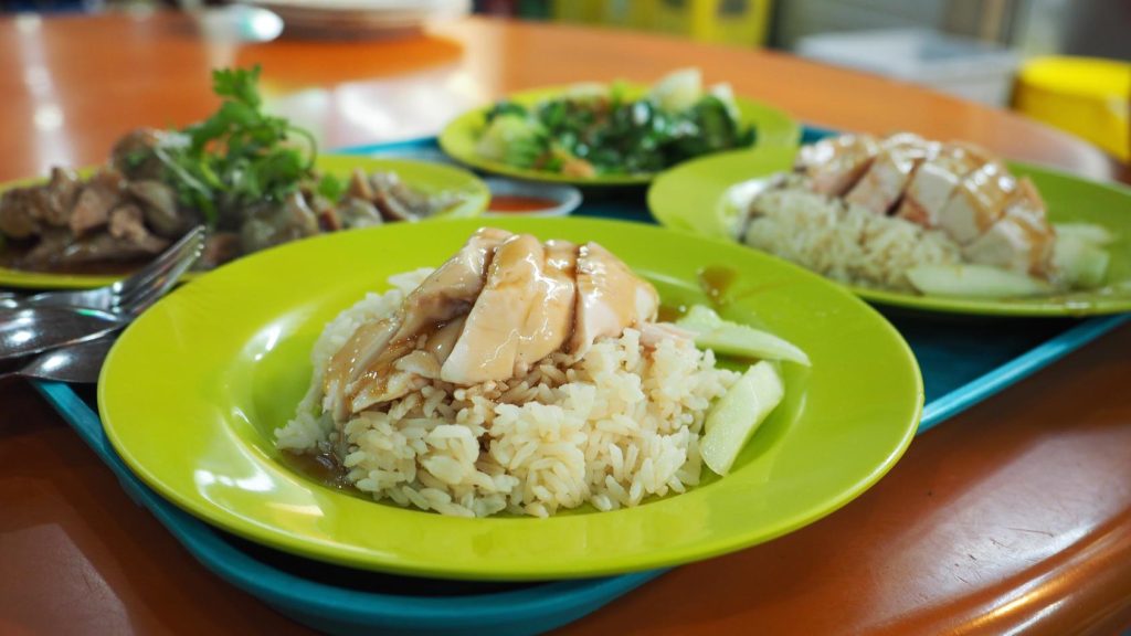 天天海南鸡饭:在麦士威熟食中心内(具体位置如前文所述),每天限量供应,白切鸡色泽光亮,自制辣椒酱为其增色不少,性价比高,人气一直很旺。