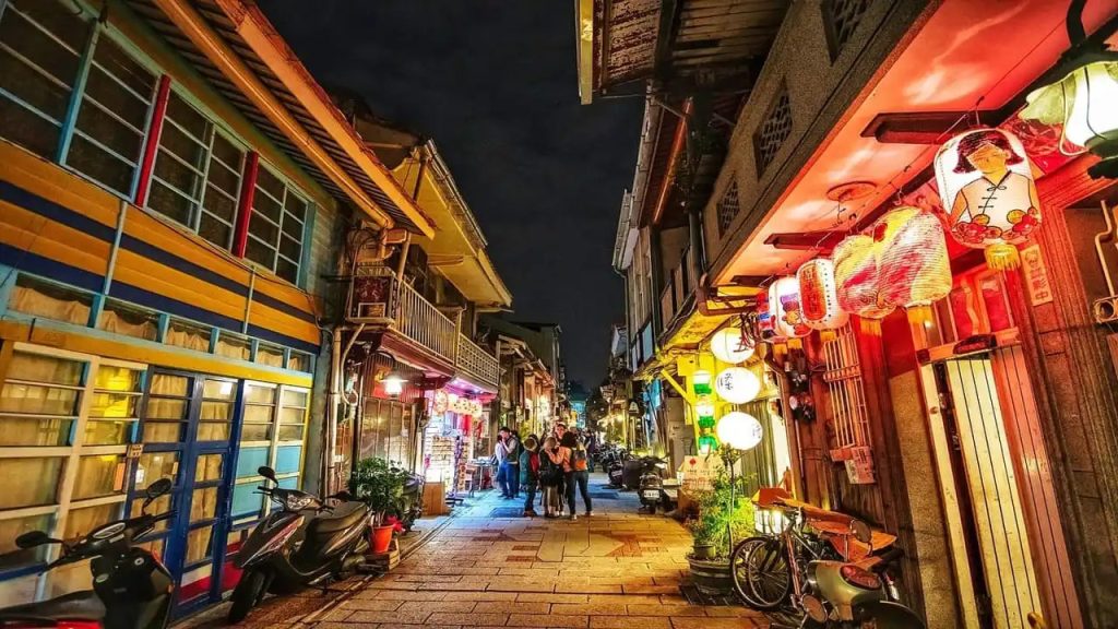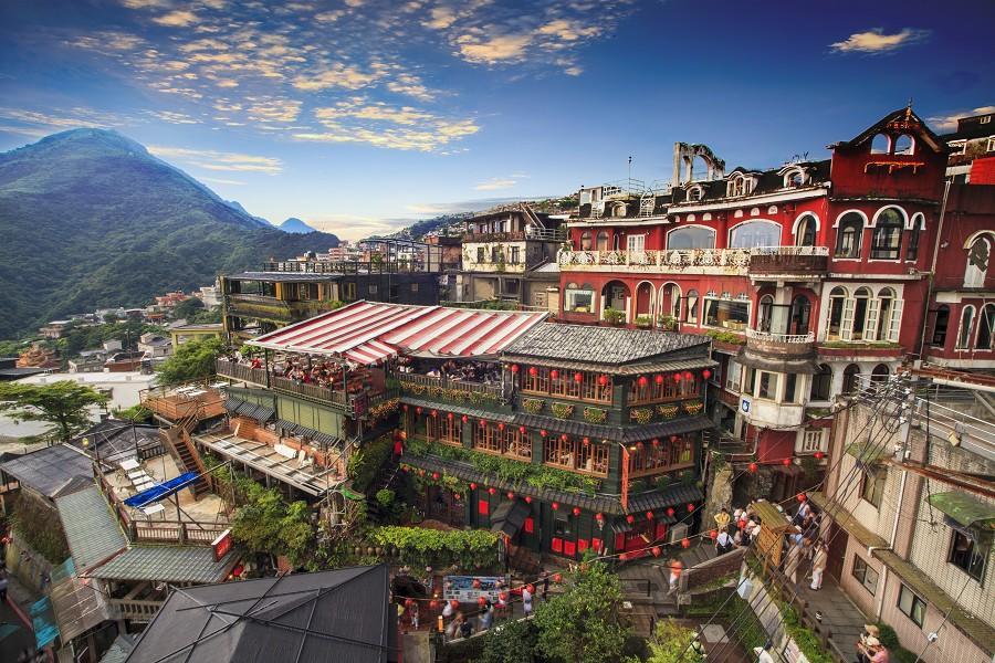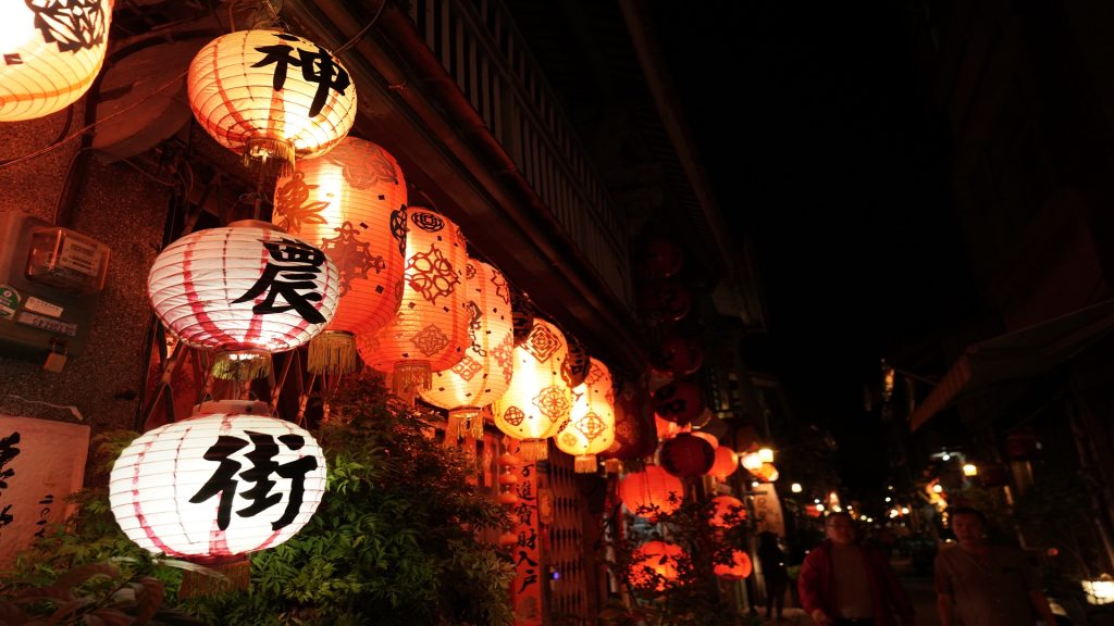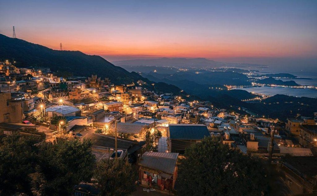 依山而建的橙红灯笼在暮色中次第亮起,仿佛宫崎骏笔下的幻境。青石板路串起茶楼与芋圆香,远处基隆港的渔火像散落的星星。
