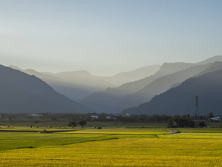 稻浪在风中写下绿色的五线谱,骑单车掠过没有电线杆的天际线。在田埂边打开热腾腾的池上饭包,米粒沾着阳光的味道。