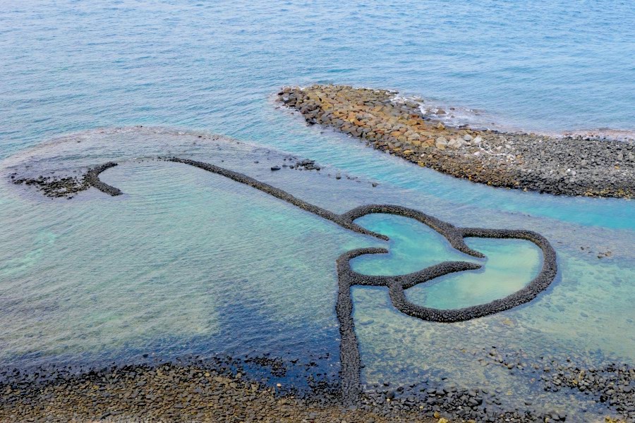 700年历史的珊瑚礁石圈成心形,退潮时像大海遗落的项链。傍晚坐在咾咕石墙上,看夕阳把石沪染成蜜糖色。