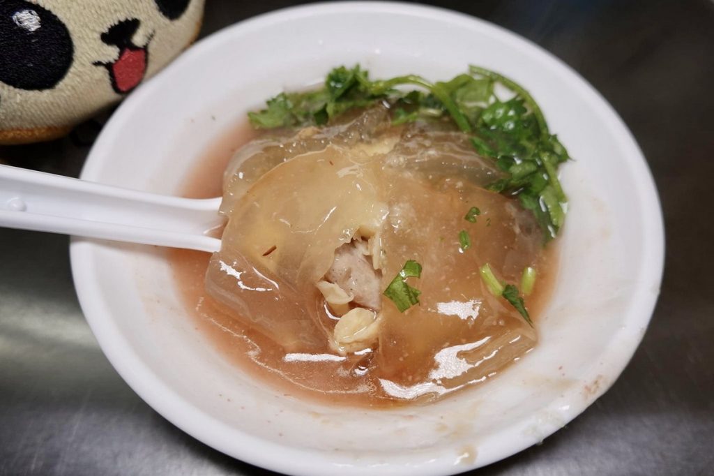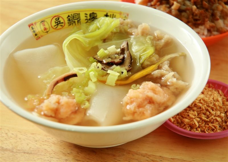 鼎边锉,基隆人的灵魂小吃,名字听起来怪怪的,味道却让人上头。端上来一碗,汤头清亮,里面飘着白嫩的米浆薄片,配上虾米、香菇、金针菇,还有点香菜点缀,看着就舒服。米浆在锅边煮成薄片,滑溜溜的,吸满了汤汁的鲜味,入口软嫩,像在吃云朵。汤底用柴鱼熬的,鲜得不行,喝一口整个人都暖了。