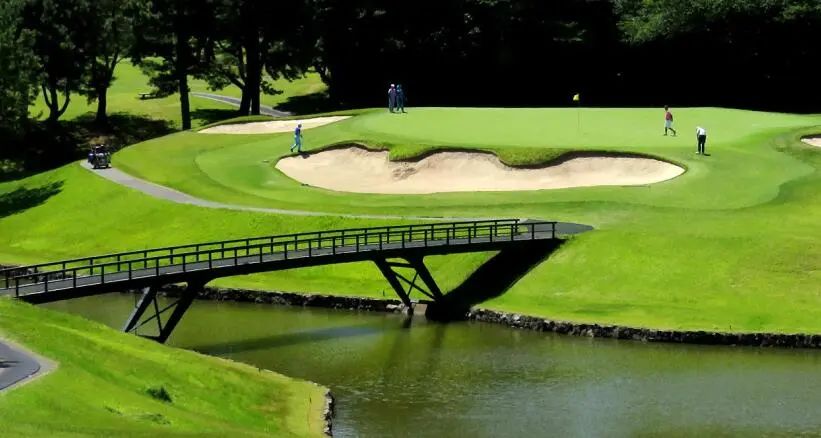 这家球场首选本特草作为草地,设计深受日本传统园林美学的影响,球场风格是英式建筑和日式庭院的结合,樱花树、枫树和青松……每个场景都极具美感。