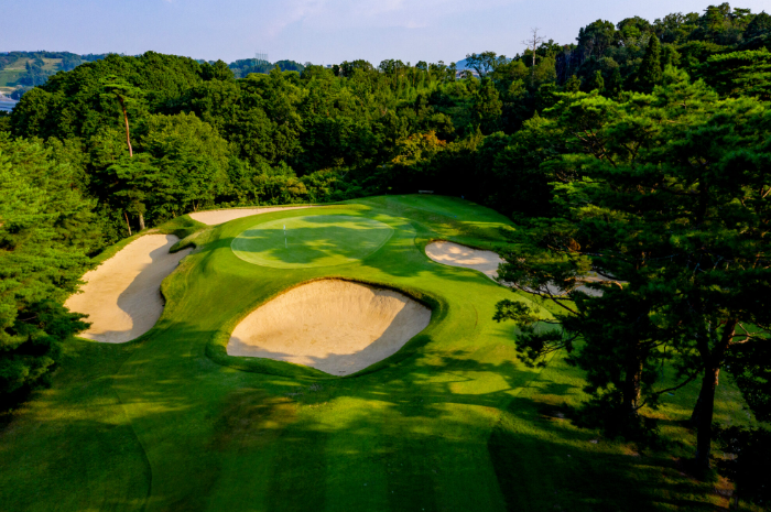 设计师上田冶充分利用池塘以及两侧茂密的树木,因此距离长的球洞需要较高的战略性,球手在挥杆的同时还可欣赏美丽的风景。