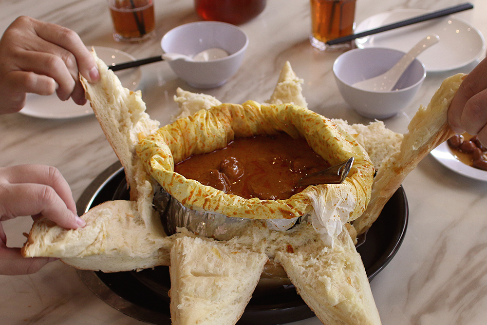 外酥内软的面包裹着浓郁的咖喱鸡,切开瞬间香气四溢!这道融合了印度与华人风味的料理,绝对是大马独有的创意美食。