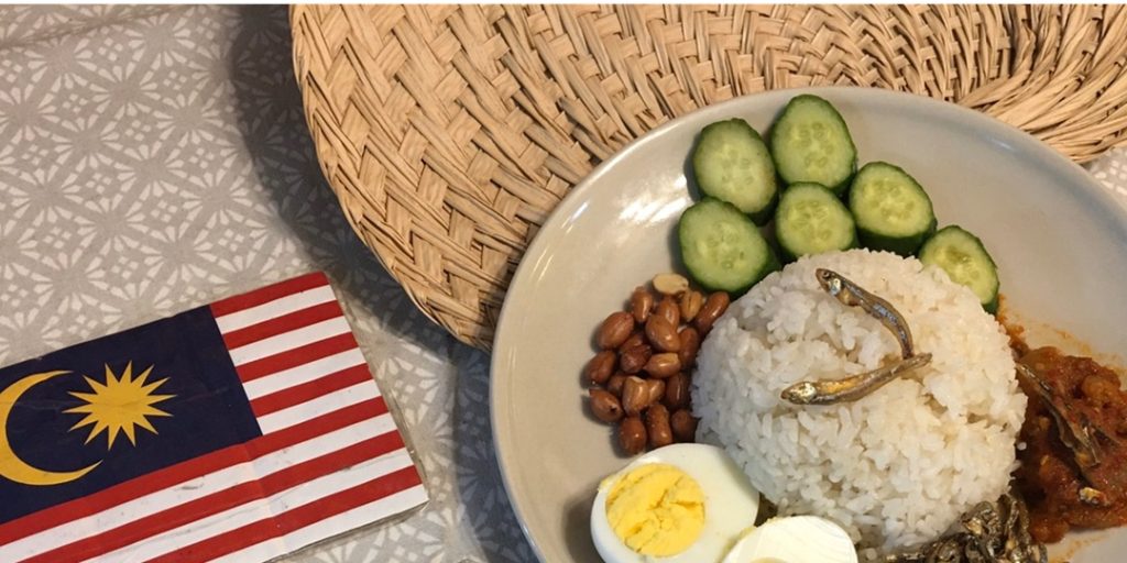 来西亚的“国民早餐”!用椰奶煮成的香米饭,配上江鱼仔、花生、黄瓜、鸡蛋和参巴酱(Sambal),豪华版还会加炸鸡或咖喱鱿鱼,绝对让你一吃上瘾。