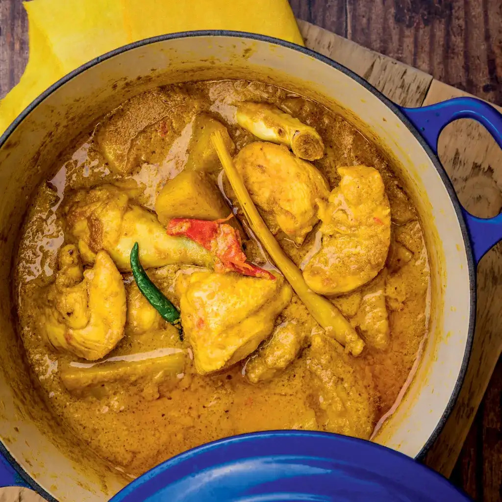 印尼咖喱起源于苏门答腊岛,口味辛辣浓郁,体现了印度对东南亚的影响。通常来说,印尼咖喱的香料包括姜黄、高良姜、生姜、香菜、黑胡椒、辣椒、小葱、大蒜、茴香、香茅、肉桂等,加入肉类、鱼、蔬菜等,放入椰奶中煮制而成。椰奶的加入,很好的平衡了咖喱中的各种香料,使之呈现出温润的口感。在印尼、马来西亚和新加坡,有许多种不同的咖喱,一般来多,苏门答腊西部和马来西亚的咖喱比较浓,颜色偏红,而爪哇岛的咖喱则比较稀,颜色偏黄。
