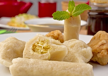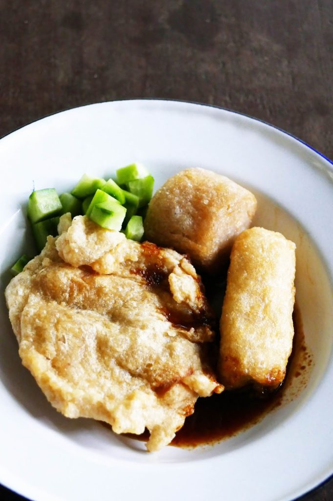 鱼糕,一款来自印尼巨港的印尼美食,它是一种传统鱼糕,由碎鱼肉和木薯粉制成。外层酥脆,质地柔软耐嚼,这道美味常配合糖醋酱汁、黄瓜片和面条。