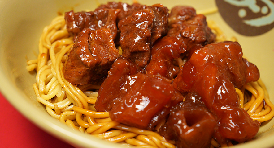 猪扒牛肉捞面(生面):碱水面的独特口感,搭配炖煮入味的猪扒和牛肉,层次丰富。