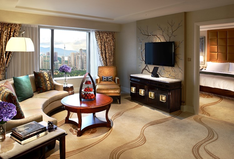 澳门君悦酒店的套房可以观赏到永利皇宫的喷泉,景观非常漂亮。酒店提供儿童洗护套装,适合带孩子的家庭入住。