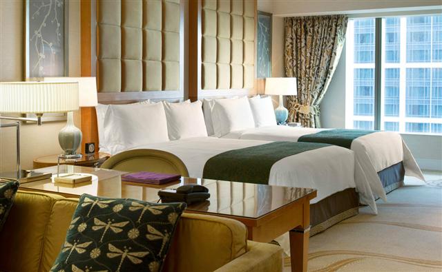 位置:澳门瑞吉酒店坐落于路氹金光大道娱乐中心,与伦敦人、威尼斯人和巴黎人等著名景点相邻。楼上便能看到埃菲尔铁塔或者大笨钟。