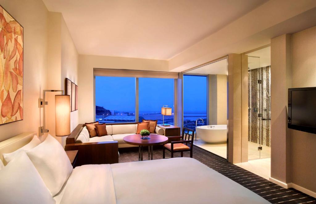 澳门君悦酒店是一家性价比高的五星级酒店,地理位置优越,离机场非常近,在酒店房间可以清晰看到飞机起降。新豪天地大巴直达机场大约10分钟,也可以选择轻轨2站地就到。