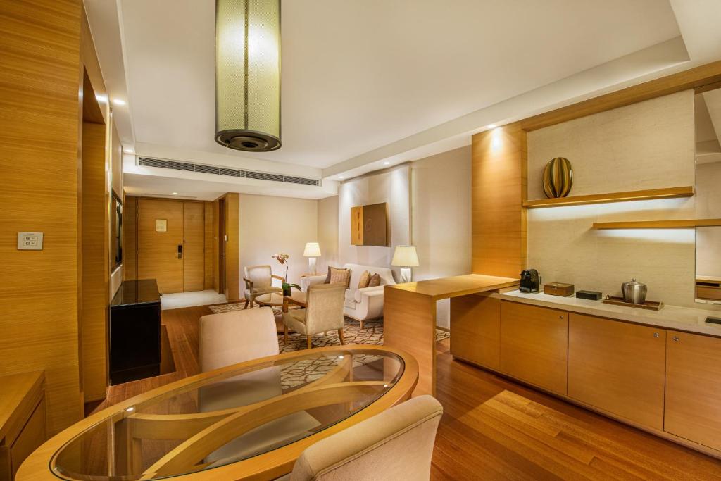 套房特色:套房内有智能控制、按摩椅、免费迷你吧和咖啡胶囊等设施,浴室设有双洗漱台和空气净化器,确保舒适睡眠。