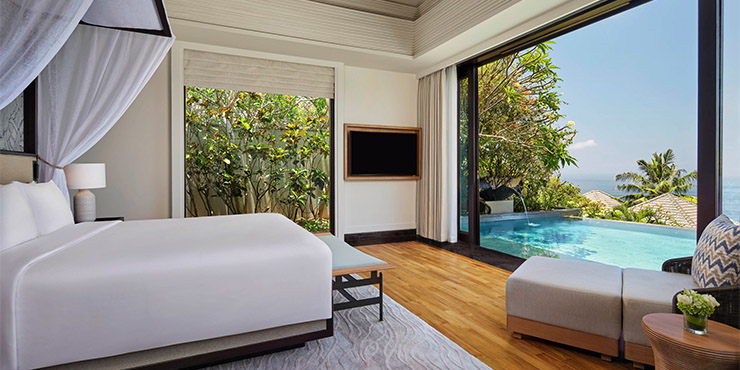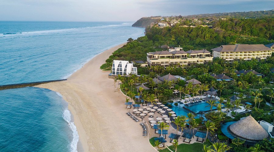 它位于乌鲁瓦图雄伟的石灰岩悬崖之上,是巴厘岛的最南端,可以欣赏到绝美的海景和浪漫的日落。由WATG操刀设计,将巴厘岛的传说、信仰和风俗以多样的意识形态,融入到酒店的设计纹理和空间中。72栋别墅依山面海,守望着壮阔的印度洋。房型面积更是阔绰的403㎡起跳,可以在此尽情享受宽敞舒适的度假生活。独立的景观花园、面向印度洋的无边际泳池,以及凉亭中的柔软沙发榻,都是放松身心的绝佳选择。