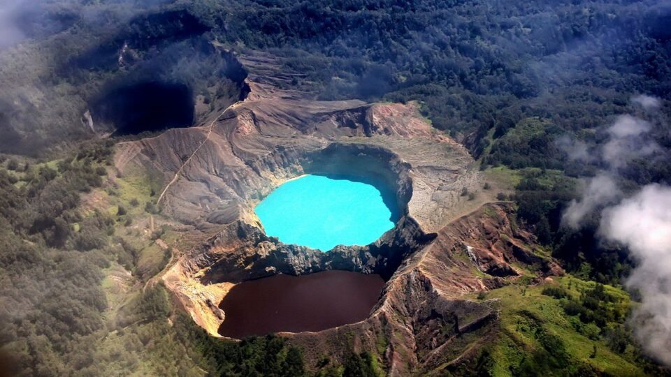 科莫多往东的一座拥有独特魅力的火山它因山上的三色火山湖而闻名湖水颜色变化莫测会随着季节、天气和矿物质成分的变化呈现出碧绿、湛蓝、红棕、墨黑等不同色调。