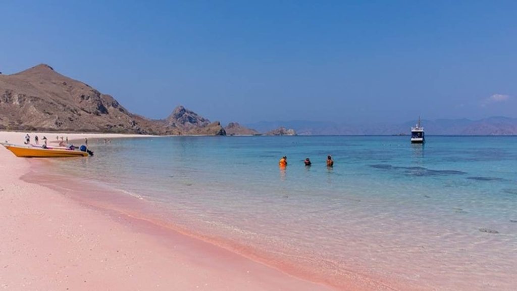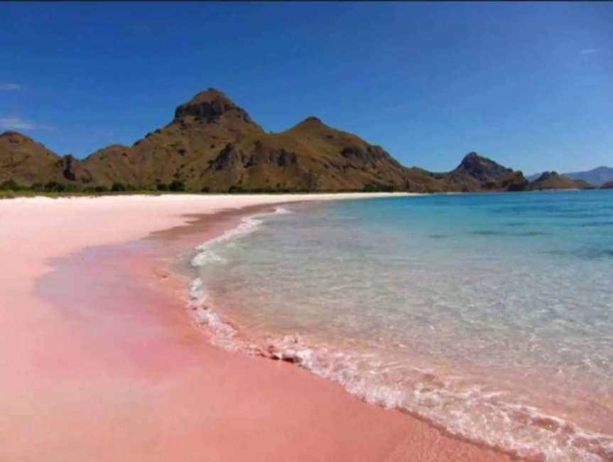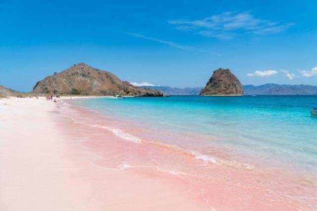 红珊瑚碎片被海浪磨成细沙与白沙交融成浪漫的淡粉色赤脚踩上去绵软温热,海水透明到能看见小鱼游弋女生一定要穿白裙来,出片率100%。