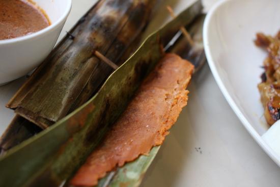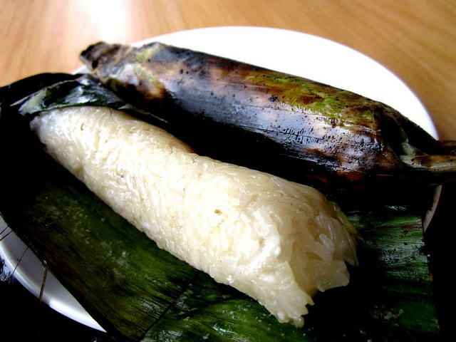 著名的马来传统小吃——Pulut panggang,是一种由蒸熟的糯米饭和叁巴酱制作成的小吃。将蒸熟的糯米饭搭配其它馅料,再用香蕉叶包着糯米饭,放在炭火上烤10-20分钟。虽然Pulut panggang 是马来西亚的著名小吃,但其实它的“原产地”并不是马来西亚,而是文莱。