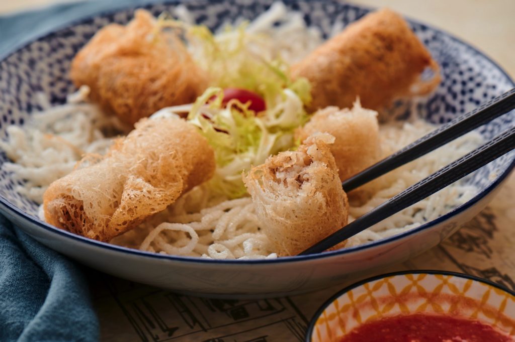 一碗面不够过瘾的话,还可以试试「金杯」,一道马来人超爱的地道小食,外层是炸至金黄色的酥皮,内馅则是胡萝卜、沙葛和豆干粒,咬下去能感受到面皮、香菜、虾和参巴醬的融合,口感爽脆。