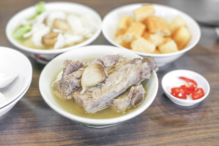 松发肉骨茶的汤底清澈,肉质软烂,肉味鲜美。店里还提供专门配好的袋装肉骨茶汤料,方便游客购买回家自己烹饪,将这份美味延续到日常生活中。除了肉骨茶,店铺中还有猪肚汤、绿叶蔬菜等菜肴可供选择,青菜的做法都很简单,如白灼,或焯水后加点调味料,讲究食材本真的味道。来就餐的客人基本都是米饭、搭配肉骨茶或猪肚汤,再搭配两盘小青菜,吃得好又营养。