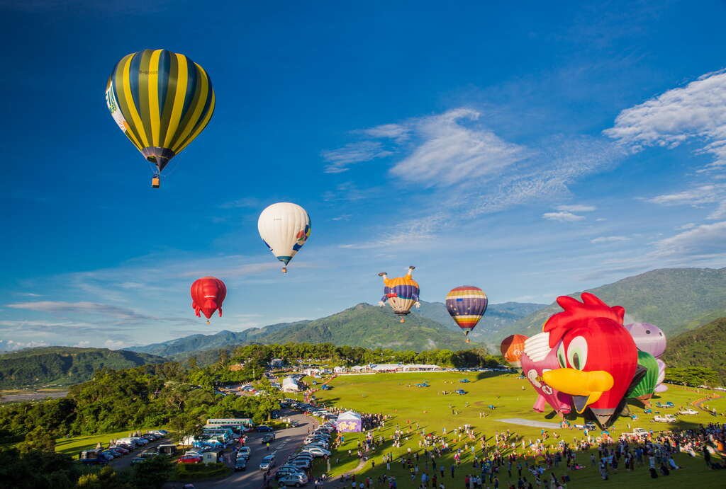 在鹿野高台,时光仿佛被赋予了翅膀。这里是俯瞰天地的绝佳所在,举目远眺,卑南溪谷底的田野如诗行铺展,阡陌纵横间尽是自然的笔触。作为花东纵谷间的天然空域,它总在盛夏时节绽放别样浪漫——五彩斑斓的热气球自绿草如茵的草坡缓缓升起,像坠入人间的梦幻星河。