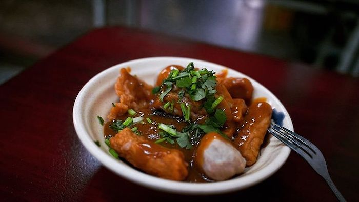 有 50 多年历史的赛门甜不辣一直安稳地坐在台湾本地小吃甜不辣的第一位的交椅上,位于台北市万华区成都路 10 号。将鱼浆制成各种形状,再经过炸制或煮制,口感香脆可口,可搭配甜辣酱、蒜蓉酱等不同酱料。