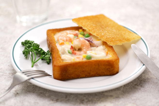 是台南市的特色小吃,在台南的赤崁楼附近就有不少店铺售卖。将厚片吐司挖空,炸至金黄酥脆,形似棺材,内馅多为奶油浓汤,常见口味包括海鲜、鸡肉、蘑菇等,刚炸好时,吐司酥脆,内馅热腾腾,口感最佳。