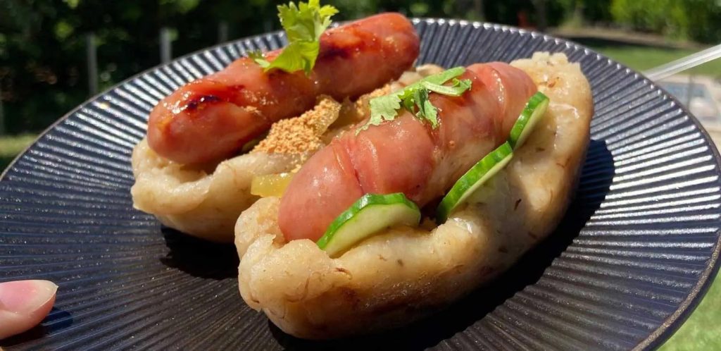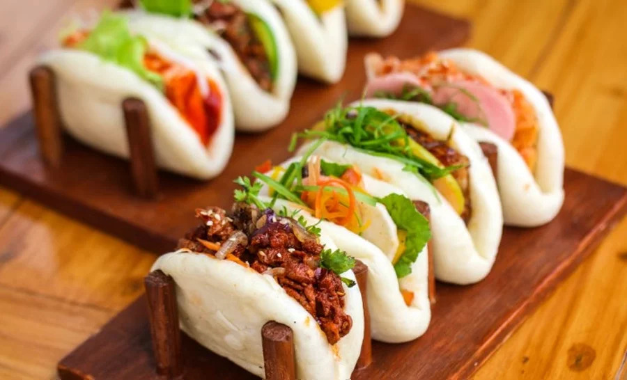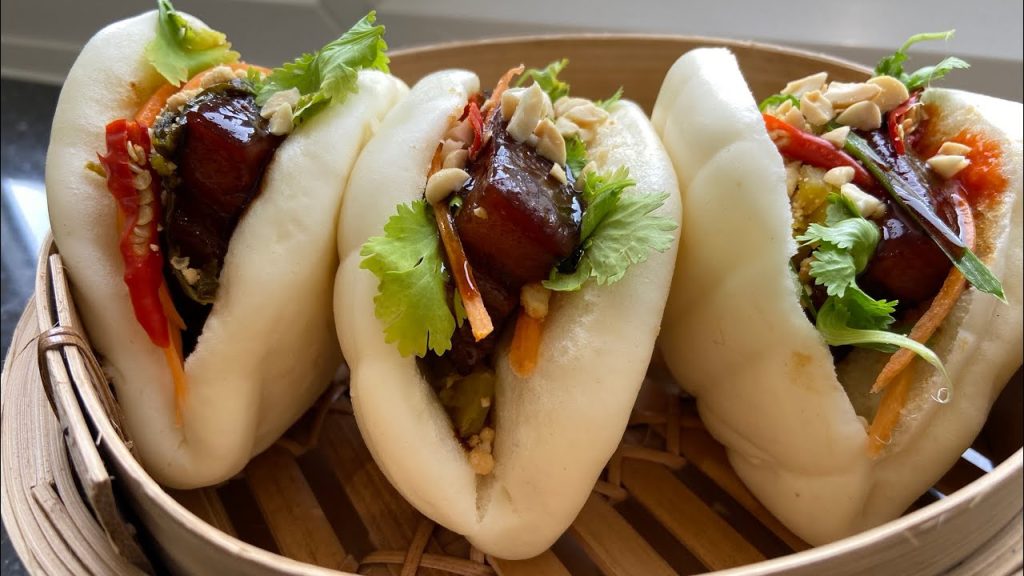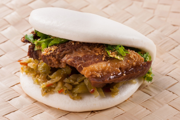 又称 “割包” 或 “虎咬猪”,在台北的饶河街夜市等地可以吃到。使用蒸制的馒头,夹入卤五花肉(焢肉)、酸菜、花生粉、香菜等,外皮松软有弹性,内馅肥而不腻,鲜香可口。