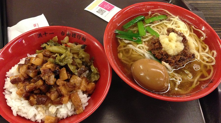 台南市的经典小吃之一,在台南的度小月担仔面总店可以品尝到正宗风味。其精致小巧的分量和浓郁的汤头闻名,早期摊贩用 “担子” 挑着炉具和食材沿街叫卖,因此得名,面条细薄,汤汁鲜美,搭配虾仁、肉燥等配料,味道十分鲜美。