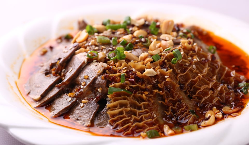 夫妻肺片,这道成都的传统特色小吃,尽管名字中带有“肺”字,实则并不使用肺作为食材,而是巧妙地利用烹饪中常被遗弃的牛杂,经过精心拌制而成。其制作过程精细入微,每一片牛杂都经过严格挑选和处理,以确保口感的嫩滑与鲜美。色泽红亮,诱人食欲,质嫩味鲜,麻辣鲜香,肉质软韧,令人回味无穷。