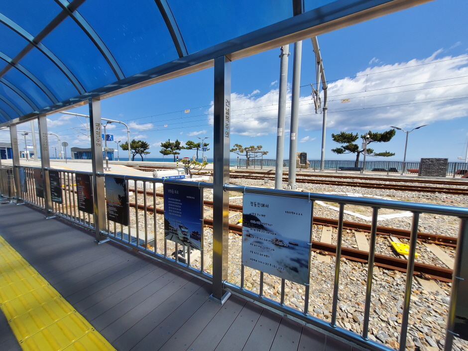 乘坐ktx逃离首都圈来江陵看海,“最美铁路”实际上是最后的5分钟沿海路段,下车的站就是韩国离海最近的正东津站。