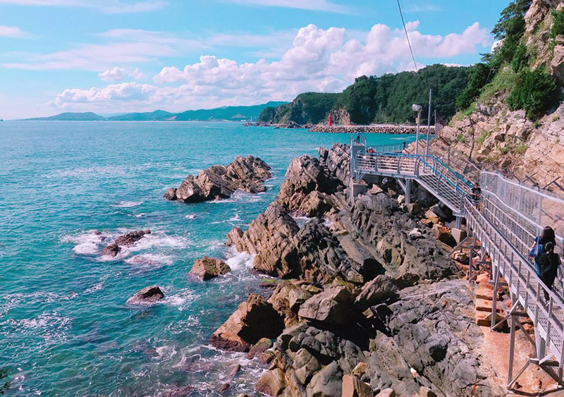 沿着海岸线一路向下,每个小城的海水浴场颜值都超能打,同样是海滨,游客比釜山还少90%,更是暗藏着悬崖古刹、“最美”铁路和韩娱钦点海景拍摄地。