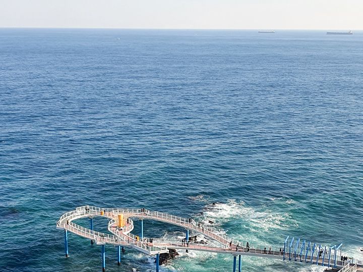 此外,在正东津的海岸边已经能眺望到不远处60米悬崖之上的sun cruise酒店,全球第一家陆地游轮度假村的大船外形非常惹眼,是好多欧美游客的ig发文封面。