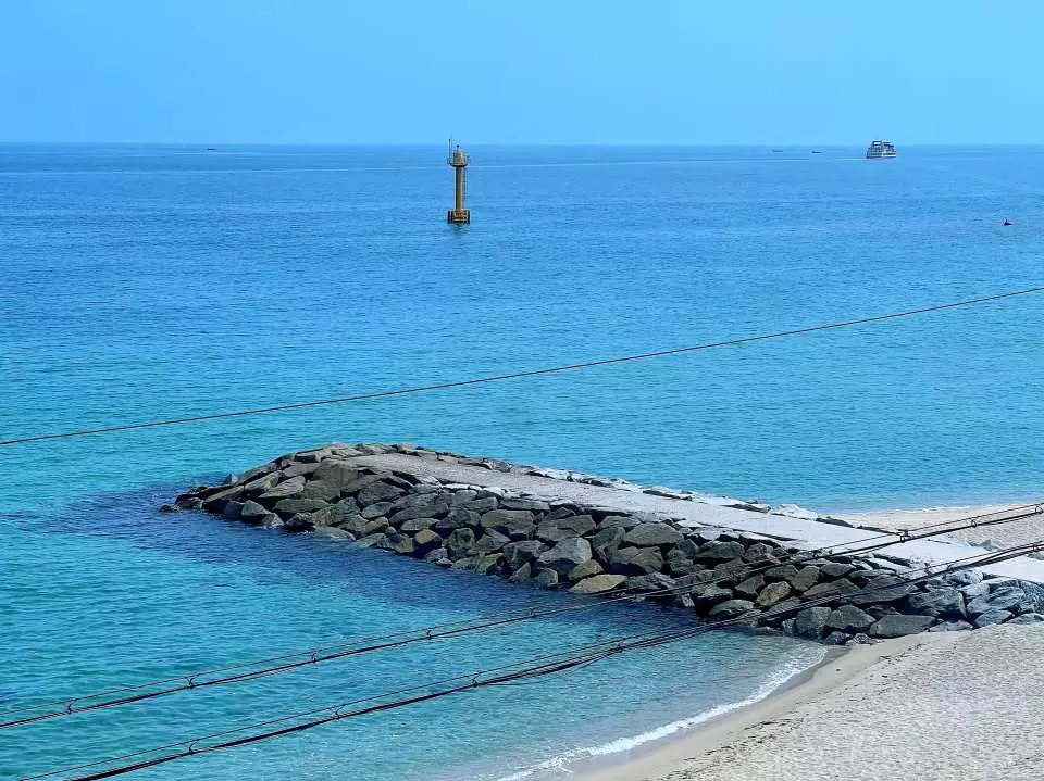 沿途会逛到“束草之眼”摩天轮、沙滩上的多个拍照造型装置,和被印上明信片冰箱贴的束草“icon”红白灯塔,在长长的防波提尽头独自梦幻。