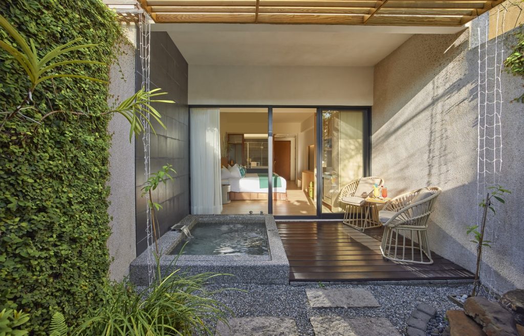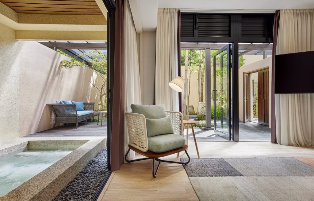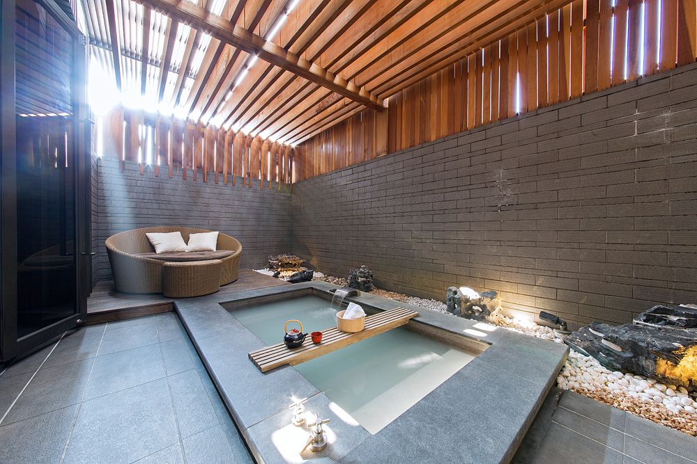 「宜兰力丽威斯汀度假酒店」结合日式禅风以及老温泉聚落的意象,搭配碳酸氢钠美人汤与独栋Villa,酒店内还有SPA设施、三温暖、烤箱、健身中心和室外游泳池,在侘寂美学中展现出具有奢华感的宁静与优雅,待在这里就可以享受渡假感十足的氛围。