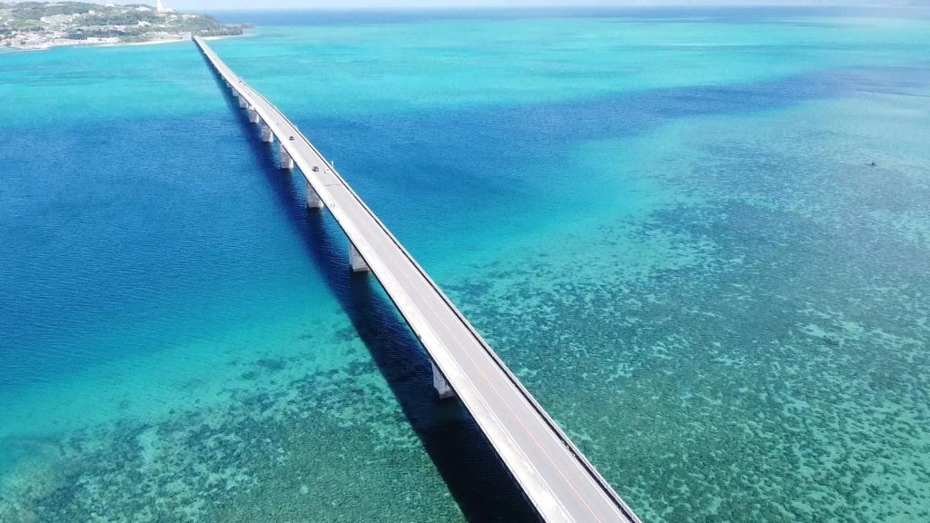 作为冲绳北部的离岛,有着“世外桃源”之称的古宇利岛,是个半径一公里、周围八公里的小岛,岛上流传着与亚当及夏娃故事类似的浪漫神话,因此有着「恋恋之岛」美誉。蓝绿色的海水、干净柔软的沙滩、小情怀的咖啡馆,使得这里的生活美好惬意。而古宇利大桥,全长2020公尺,是日本免费通行大桥之中的最长的大桥。自2005年开通后,琉球人的神圣之岛古宇利也成为冲绳受欢迎的旅游地。彷佛是漂浮在海面上的道路,桥身划过清澈的海水~瞬间海天距离桥面极近,绵延在前方的坡路就像云霄飞车的轨道般直达天际。