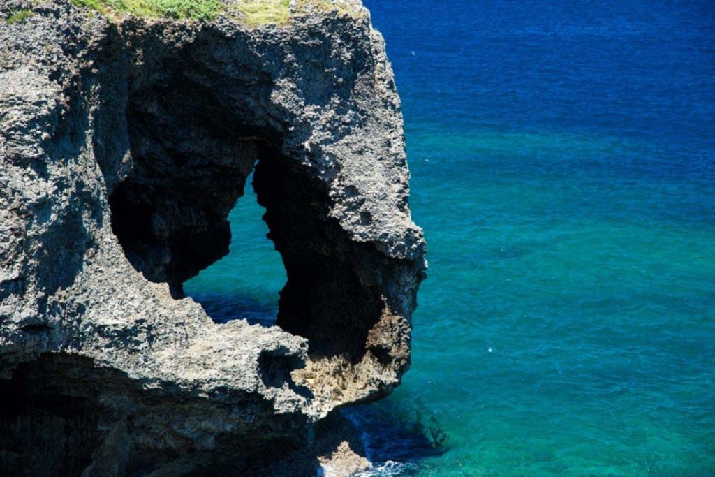 位于冲绳县国头郡恩纳村海边的断崖之上。万座毛名字的由来是琉球王朝时代尚敬王的评价,万座毛由石灰岩构成,悬崖常年在海浪侵蚀下,形成了如象鼻般的独特造型。湛蓝的海水下是成片的珊瑚礁,崖上则是一片辽阔的青草地,不妨试着面向大海,听着海浪拍打崖壁的声音,将面前海天一色尽收眼底。
