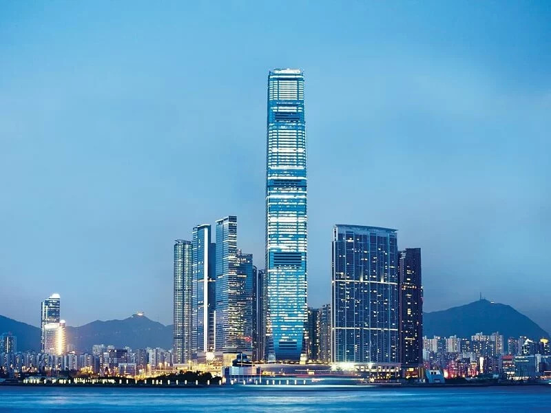 香港丽思卡尔顿酒店曾经一度是世界最高的酒店,占据了地标建筑九龙环球贸易广场的103层-118层,大堂就设在103层400米多米的高空,是香港极为罕见的超高楼酒店,可以将维多利亚港和港岛的风景尽收眼底。