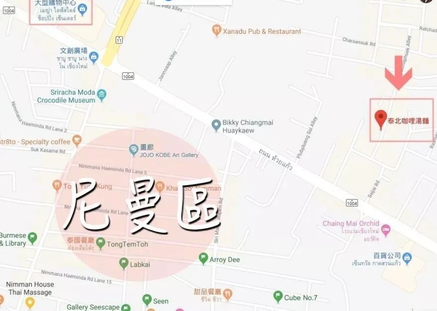 Maesai 位在尼曼区附近,把地图标出来了,这样有概念了吧!如果还没有请直接看 Google 地图。