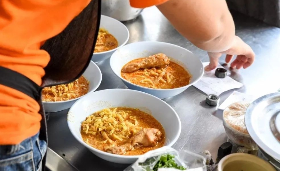 排队人潮超级多,无论是观光客洋人、华人或是当地人都有。不过因为是小吃,所以翻桌率算很快,大约等了10分钟就有位置坐。店里几个电风扇,正中午来吃辣的还是有一点热。不过店家有提供冰块跟水可以喝,自己装一杯冰水消消暑解辣很爽快!再不然就点一杯泰式奶茶,一杯才 15泰铢超便宜!